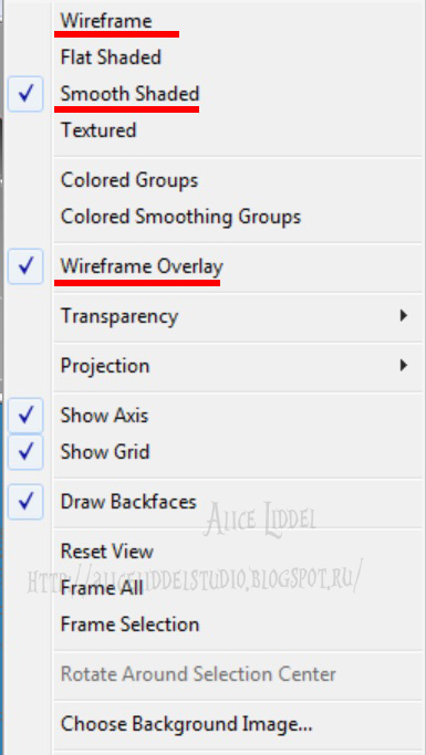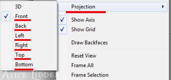 По умолчанию у нас стоит Wireframe (мы видим просто точки-вертексы), переключение на Smooth Shaded позволяет нам увидеть текстуру, как на манекене в четвертом окне с 3D просмотром. Чтобы видеть на этой текстуре точки – нажмите Wireframe Overlay. На скрине ниже мы видим доступные нам проекции, вы можете смотреть меш со всех сторон, просто переключая виды.