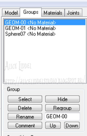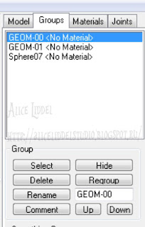 Наша юбка находится не там, где нам нужно, поэтому жмем Edit – Select – ByGroup. Выбираем группу со сферой: