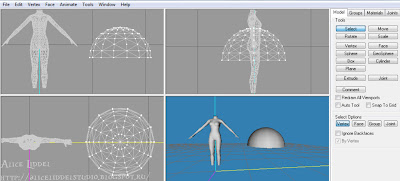 3. Основа юбки готова. Снова полностью выделяем нашу полусферу и перетаскиваем ее на модель при помощи Move. Располагаем так, как нравится нам, и готовимся танцевать танец бабуинов, ведь мы почти создали меш нашего платья!